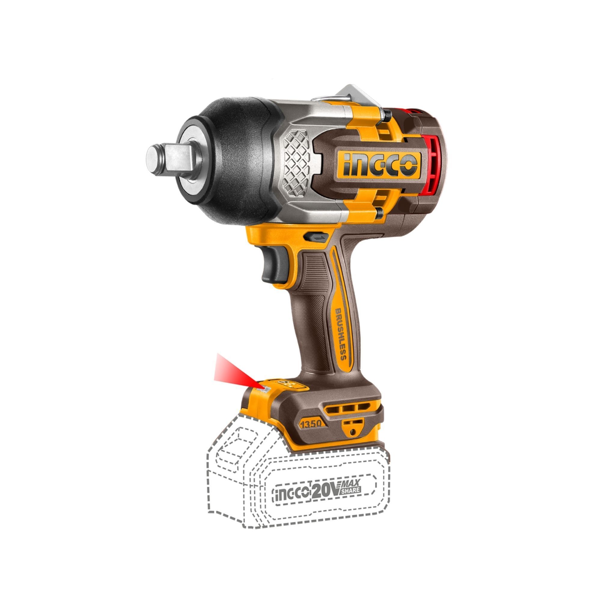 chave impacto 1350nm, impacto 3/4 brushless, chave para porcas pesadas, ingco ciwli201351, chave de impacto 20v, torque 1900nm, linha p20s.