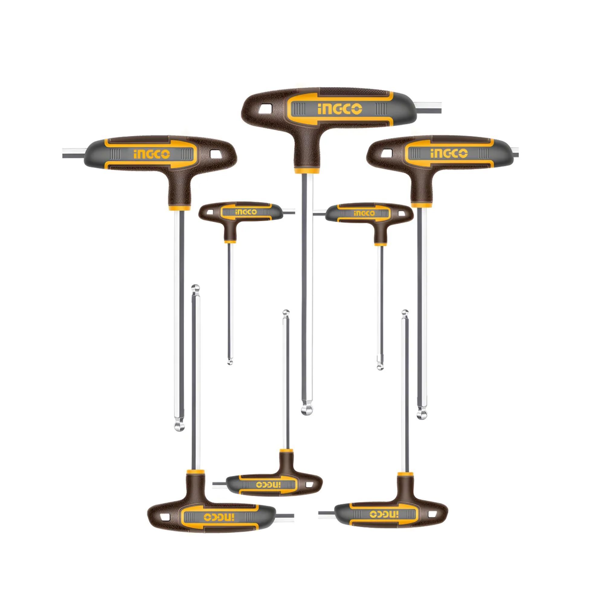 chave allen t, jogo chave sextavada, chave hexagonal ponta bola, chave punho t, chave ponta esférica, ingco HHKT80828, kit 8 peças, chave mecânico.